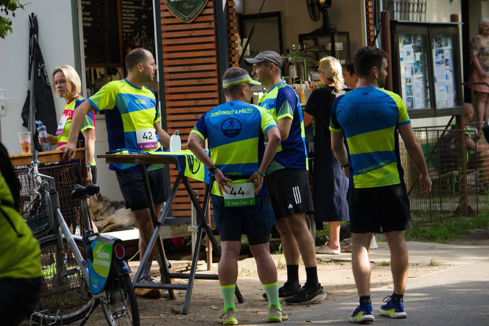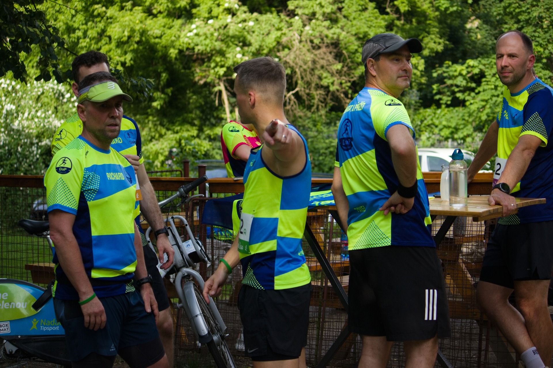Po obeznámení se s pravidly, co znamená štafet mix, kolik je žen v mužské štafetě (no věřili byste tomu?) a kolik mužů v ženské (žádná) bylo jasné, jak se složením borci z DaP naloží. Adeptů na běh bylo hodně, ale ukázalo se, že někteří mají i jiné plány a povinnosti a tak se na trať z Braníku směrem do Modřan a zpět vydaly tyto štafety: